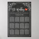 Sätesschemat för 12 Bord i Bröllop Poster mallar - Elegant Script och vit Blommigt Ram på Grunge Black Chalkboard Background. En Perfekt för din stora dag. Alla textstorlekar i stil, färg, kan ändras för att passa dina behov!