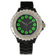 12 dekor - Grönt på svart Armbandsur