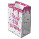 Färgfyllda godis sprinkler på vitt med droppande rosa isbildning för 12:e födelsedag. Bakgrunden till färg kan ändras. Text kan redigeras.