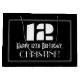 Den här vintagen av uppträdandet av 20-åringar ser inspirerad presentsäcksdesign med ett stort konsthugge-inspirerat stil nummer "12", meddelandet "Lycklig 12:e födelsedag,", ett eget namn och ett gräns mönster som består av tunt linjer. Den har en bakgrund med svart färgad. En dylik presentpåse på födelsedagen kan användas när en gåva eller present i firande på någons tolfte födelsedag är ge. [~Z0000495]