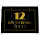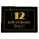 Denna 20-årsjubileum med stil inspirerade vintagens presentsäcksdesign har ett stort konsthugga som ser inspirerad ut med nummer "12", meddelandet "Lycklig 12:e födelsedag", ett redigerbart namn och ett gräns mönster som består av tunt linjer. Bakgrunden är svart på färgad. En presentpåse som denna kan användas när man slår in gåvor som ges till någon i firande på deras 12:e födelsedag. [~Z0000501]