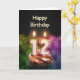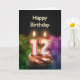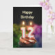 En kopp-tårta med ljus. Ljusen består av nummer 12, för en 12:e-födelsedag. Ett födelsedagskort som passar alla.