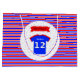 Den här 12:e-födelsedagsäcken är i ljusröd och blå färg och lätt personlig: Skriv bara namn på födelsedagsflickan eller pojken i lådan. På den röda födelsedagskalendern står "BIRTHDAY" i svart huvudstad brev - eller så kan även detta redigeras. Det röda och blå rand matchar det strimlade vävnadspapper som också finns i samlingen.
