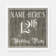 Den här porten och elegant födelsedagsfest-temat papper napkin-design har ett eget namn och meddelandet "12:e Födelsedagsfest". Det stora antalet "12:e" och "Födelsedagsfest" i ord finns i utformandet av manuset stil, och bakgrunden har ett faux/imitation woodgrain-inspirerat mönster. Finare, så att man kan ta fram pappra servetter kan det vara bra att hålla en födelsedagsfest/firande för att hedra någons 12:e födelsedag. [~Z0000564]