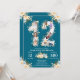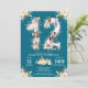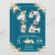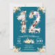Skapa en tolfte födelsedag med sju bilder i stort nummer tolv. Dekorerad med vacker och underbar vattenfärg gult och blåa blommor och ro med grönt löv. Perfekt 12:e födelsedagspresent. Personlig nummer 12 fotokollage för ett unikt och mycket speciellt inbjudningskort.