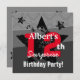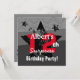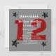 12:e TWEEN Överraskningsfödelsedagsfest Träkolsgrunge C12 med stjärnor. Denna moderna svarta, grå och röda design med sina exploderande grungestjärnor är ett roligt men ändå elegant sätt att inbjuda folk till en 12-årings SURPRIS-födelsedagsfirande. Du kan experimentera med olika papperstyper genom att klicka på fliken "Inbjudningsalternativ" i det övre högra hörnet. Jag rekommenderar det isfärgade metalliska papperet som ger din födelsedagsinbjudan en festlig glans och lyster. Härligt!