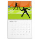 12 månaders idrottskalender för 2025, med olika idrottsgrenar i månaden, inklusive: skidåkning, fotboll, basketboll, baseboll, hästar, golf, simning, spår och fält, tennis, hockey, fotboll och tävla.