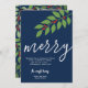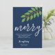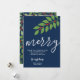 12 Photo Collage - Merry Script - Navy Botanical Julkort