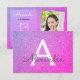 Trettonårs födelsedagsfest för flickor Eleganta falska glans och glitter lila och rosa ombré monogram födelsedagsinbjudningar är perfekta för en tretton (13:e) födelsedagsfest. Dessa foto- eller bildinbjudningar är perfekta för en glamourös födelsedagsfest. Du kan uppdatera inbjudningskortet med ditt eget foto, namn och detaljer om födelsedagsplatsen.
