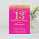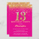 13-årsdag Hot Pink och Guld Glitter Konfetti Inbjudningar