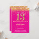 13-årsdag Hot Pink och Guld Glitter Konfetti Födelsedagsinbjudan. För ytterligare anpassning, klicka på "Anpassa"-knappen och använd vårt designverktyg för att ändra denna mall.