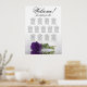 Elegant bröllop har 13 bord och visar en romantisk och sofistikerad utformning med en enda långdragen djup lila ro som ljuger på sidan och reflekterar i bassäng i vatten. Med sittplatserna för 130 gäster och 10 platser per bord ger detta diagram tillräckligt med utrymme för dina gäster att enkelt lokalisera sina platser. Titeln "Välkommen! Hitta bord" är skriven i elegantens manusjett, medan det finns utrymme för namnen av paret och bröllop-datumet i grund. Det här schemat är ett utmärkt sätt att lägga till skönhet, klass och stil till ditt bröllop, samtidigt som det hjälper gästerna att hitta sina platser.