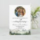 Ett elegant bröllop-årsjubileum Spara datumkortet med vattenfärgsberg och gräs träd och ett speciellt foto som du kan anpassa med dina detaljer.