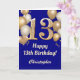 13:e födelsedag Blått och Guld-ballonger Konfetti Kort