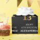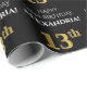 Denna lyxiga och elegant födelsedagskalemetterade pappra utformning visar meddelandet "LYCKLIG 13:e BIRTHDAY,", en personlig namn, och födelsedagsnumret "13:e" med ett faux/imitation guld inspirerat utseende mönster. Bakgrunden är svart på färgad. Papper som denna kan användas när presenter/presenter ska förpackas i firande på någons trettonde födelsedag. [~Z0000454]
