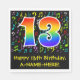 Den här roligten, den färgstarka och pulserande pappra napkindesignen har ett stort nummer "13" med en regnbågsspektrumövertoning som inspirerar mönster. Det innehåller också meddelandet "Lycklig 13:e födelsedag" och ett eget namn. En del av bakgrunden har ett färgstarkt musik noter och symboler mönster. Roligt, anpassade pappra blöjor av detta slag kan användas vid en firande som hålls för att hedra en musikers, en sångares, en kompositörs eller någon annans trettonde födelsedag. [~Z0000421]