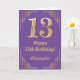 13:e födelsedag Lila och Guld Glitter Ram Kort