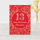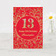 13:e födelsedag Röda och Guld Blommönstret Kort
