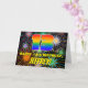 Framsidan av denna spännande och uppslagna födelsematerial har ett stort nummer "13" med ett multifärgat regnbågsspektrum som inspirerar till gradient mönster. Det innehåller också budskapet "LYCKLIG 13:e BIRTHDAY" och ett anpassade som tar emot namn. Bakgrunden till framsidan har ett glatt, flerfärgat mönster som inspirerats av brinnande berömda fyrverkerier. Insidan har ett hälsning-meddelande från anpassadets födelsedag, eller kan kanske rensas och lämnas tomt om ett meddelande ska skrivas för hand i stället. Ett sådant här hälsningskort för personligens födelsedag kan användas för att bekräfta någons trettonde födelsedag. [~Z0000619]