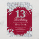 13:e födelsedagen Burgundy Red och Silver Diamond Inbjudningar