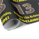 Den här roligt- och strålfödelsedagskalan som omsluter den pappra designen har ett stort nummer "13" med ett faux-träringskorn som inspirerar till att se mönster, tillsammans med meddelandet "13:e födelsedagen i Lycklig" och ett anpassade namn. Att packa pappert som detta kan vara ett roligt sätt att packa en födelsedagspresent eller gåva till någon som firar sin trettonde födelsedag. [~Z0000432]