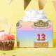 Den här roligten och den glatta födelsedagskalemat som omsluter den pappra designen har en bild av en treskiktad födelsedagskalas med sifferformade ljus ovanpå som visar åldern 13 år, tillsammans med meddelandet "13-13-årsdagen för LYCKLIG" och en personlig-mottagare namn. Bakgrunden har ett monteringsspektrum för pastellregnbåge med flera färg inspirerad gradient mönster. Det kan vara ett roligt att slå ihop en gåva eller present som ges för att fira någons trettonde födelsedag. Det kan vara ett pappert sätt att fylla en gåva eller present. [~Z0000622]