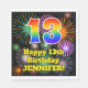 Denna spännande och roligt-pappra napkin-design har ett stort nummer "13" med en färgstark regnbågsspektrumövertoning som inspirerade mönster, tillsammans med meddelandet "13:e födelsedagen i Lycklig" och ett redigerbart namn. Bakgrunden är en färgstark mönster som inspirerats av att det ser ut som att bränna berömda fyrverkerier. Färgfulla pappra blöjor som denna kan vara roligt till använda vid ett party som hålls för att hedra någons trettonde födelsedag. [~Z0000574]