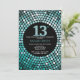 13:e födelsedagsinbjudan. Svart och Teal Glitter. Teal Diamond. Barns födelsedag Party. För pojk eller flicka Bday bash Party.
