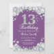 13:e födelsedagsinbjudan Lila och Silver Diamond Inbjudningar