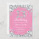 13:e födelsedagsinbjudan Rosa och Silver Diamond Inbjudningar