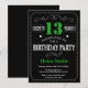 13:e födelsedagskalan Black and Grönt Chalkboard Inbjudningar