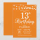 13:e födelsedagsinbjudan med String Ljus. Orangens bakgrund. Barns födelsedag. Boy eller Girl Dam Bday Inbjudan. 13:e 15:e 16:e 18:e 20:e 30:e 40:e 60:e 70:e 80:e 90:e 100:e, oavsett ålder. Om du vill göra ytterligare anpassningar klickar du på knappen "Anpassa" och användor verktyg som är utformat för att ändra mallen.