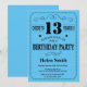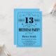 13th Födelsedaginbjudansvart och blått Inbjudningar