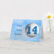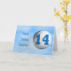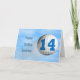Ett underbart roligt kort för golfer eller golf tillfälle. En golf boll som flyger genom luft med 14 skrivna på den.