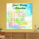 14 Bra Morgonbekräftelser - Positivt tänkande Wallart kommer till er genom "Dagens bekräftelser", som innehåller en mängd olika produkter för dem som är intresserade av ämnen som positivt tänkande, självhjälp, bekräftelser, yoga, universell lagstiftning, sinne för sakförhållanden och som i allmänhet lever positivt och firar livet. Bekräftelser är kort, snabbformuleringar som har en positiv inverkan på er. Bekräftelser är en väsentlig del av ett positivt tänkande och ökat medinflytande och kommer att göra det möjligt för er att förbättra tänkan.