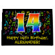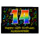 Den här roligten, den klara och färgstarka presentsäckens födelsedagskalenliga utformning har ett stort nummer "14" med en regnbågsspektrumövertoning som inspirerade mönster, tillsammans med meddelandet "Lycklig 14:e födelsedag" och ett anpassade namn. En del av bakgrunden har ett mönster med olika musik noter och symboler med olika färg och storlekar. En matad presentsäck som den här kan vara ett roligt sätt att slå ihop en gåva eller present som ges till en sångare, en musiker, en musikkompositör eller någon annan som firar sin fjortonde födelsedag. [~Z0000425]