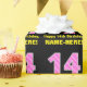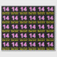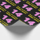 Den här roligten och den glatta födelsedagskalemat som omsluter papper design har ett stort nummer "14" som har en rand mönster som innehåller hjärtformer färgad ljus rosa och mörk rosa. Det innehåller också hälsning:s födelsedagsmeddelande "Lycklig 14:e födelsedag", och en personlig-mottagare namn. Födelsedag som är papper som detta kan användas när en gåva eller present i firande på någons fjortonde födelsedag är ge. [~Z0000435]