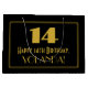 Den här vintagen har 20-talets framtonade presentsäcksdesign i stil ett stort konst deco stil inspirerat nummer "14", meddelandet "14:e födelsedagen i Lycklig", ett eget namn och ett gräns mönster som består av tunt linjer. Den har en bakgrund med svart färgad. En dylik presentpåse på födelsedagen kan användas när man ge en gåva eller present i firande på någons 14-årsdag. [~Z0000501]