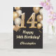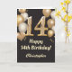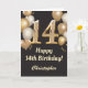 14:e födelsedagen Black and Guld Balloons Confetti Kort