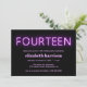 14:e Födelsedagsfestens Lila Neon Ljus Inbjudningar