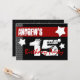 15-årsdag Modern För Honom Röd Vit Svart Denna moderna röda, vita och svarta design är ett roligt sätt att inbjuda folk till en 15-årsfirande. All text är helt anpassningsbar. Du kan experimentera med olika papperstyper genom att klicka på fliken "Inbjudningsalternativ" längst upp till höger. Jag rekommenderar det isfärgade metalliska papperet som ger din födelsedagsinbjudan en festlig glans och lyster. Trendigt!