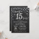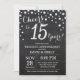 15-årsjubileum för bröllop kritbräda svart och silver inbjudan. Femtonårsjubileum för bröllop. Kritbräda svart och silver glitter diamant bakgrund. Silverkonfetti. Vuxen födelsedag. Kvinna eller man manlig födelsedagsfest. För ytterligare anpassning, klicka på "Anpassa"-knappen och använd vårt designverktyg för att ändra denna mall.