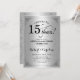 15-årsjubileumsinbjudan. Elegant vintage-design med damaskmönster och falskt glitter i silver. Svart typsnitt med versaler. Skål för 15 år! Kan anpassas till vilket årsjubileum som helst! Kontakta mig om du behöver ytterligare anpassning.
