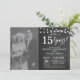 15-års bröllopsdag-inbjudan med eget foto. Kritskriftsbakgrund. Strängljus. Svart och vitt. 1:a, 2:a, 3:e, 4:e, 5:e, 10:e, 15:e, 20:e, 25:e, 30:e, 35:e, 40:e, 45:e, 50:e, 55:e, 60:e, 65:e, 70:e, 75:e, 80:e, Alla år. Födelsedagsfirande för vuxna. Kvinnlig eller manlig födelsedag. För ytterligare anpassning, klicka på "Anpassa"-knappen och använd vårt designverktyg för att ändra denna mall.