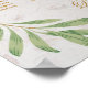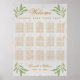 Bröllopsplaceringskartan har 15 bord. I alla fyra hörnen finns pilgrenar med gröna blad. Bakgrunden är vit marmor. All text är guldfärgad. Ordet Välkommen, ovanför, och namnet nedan, är skrivna med en elegant kalligrafi, resten i versaler. Pilgrenarna är från det vintage tapetmönstret "Willow Bough" designat av William Morris (1834–1896), nu i public domain.