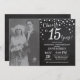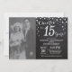 Femtonde Bröllop-årsdagen med anpassningsbar-foto. Chalkboard Black and Silver-inbjudan. Femton Bröllop-årsdagen. Chalkboard Black och Silver Glitter Diamond Background. Silver Confetti. Vuxen Birthday. Födelsedagsfest för kvinnor eller män. Om du vill göra ytterligare anpassningar klickar du på knappen "Anpassa" och användor verktyg som är utformat för att ändra mallen.