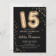 15:e födelsedagsfest inbjudan Elegantens utformning i faux glitter guld och svart. Inbjudan-kortet har guld nummer 15-ballonger och skriptteckensnitt. Perfekt för en snyggt vid firande. Berätta om du behöver anpassningsbarnas ålder.