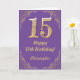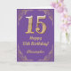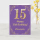15:e födelsedag Lila och Guld Glitter Ram Kort