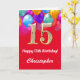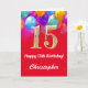 15:e födelsedag: Röda och Guld färgade ballonger Kort