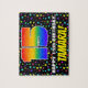 Den här uppgången och djärva födelsedagskalemodlingen i pussel har ett stort nummer "15" med ett flerfärgat regnbågsspektrum som inspirerar gradienten mönster. Det innehåller också budskapet "LYCKLIG 15:e BIRTHDAY" och en anpassningsbar mottagare namn. Bakgrunden har en glatt, flerfärgad stjärna mönster. Ett roligt, anpassat födelsedagspressel som detta kan användas för att fira någons femtonårsdag. [~Z0000607]
